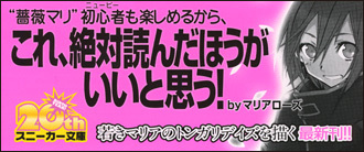 叫艾利幫購了Ver. 4,不過到現在都還沒下單,原因是她自己要買的東西延遲到10/08才出版OTL 我的瑪利亞跟搶戲黑樣啊!(萊特:等等這好像有很嚴重的不對= =) (薔薇的瑪利亞Ver4 hysteric youth) 「對『薔薇瑪利』的初心者而言會很快樂的, 這個,不用多考慮 絕對要讀!」by瑪利亞羅斯 偷偷連請自行點開(喂)整個就是有點開心,雖然說不是亞濟安有點可惜(不是) 是說到目前為止還沒有哪一個動漫小說角色的生日是跟我同一天的OTL 連老哥老媽老爸都有了,可不可以也給我來一個啊?! 我的生日那麼不是良辰吉日嗎?!(不是)